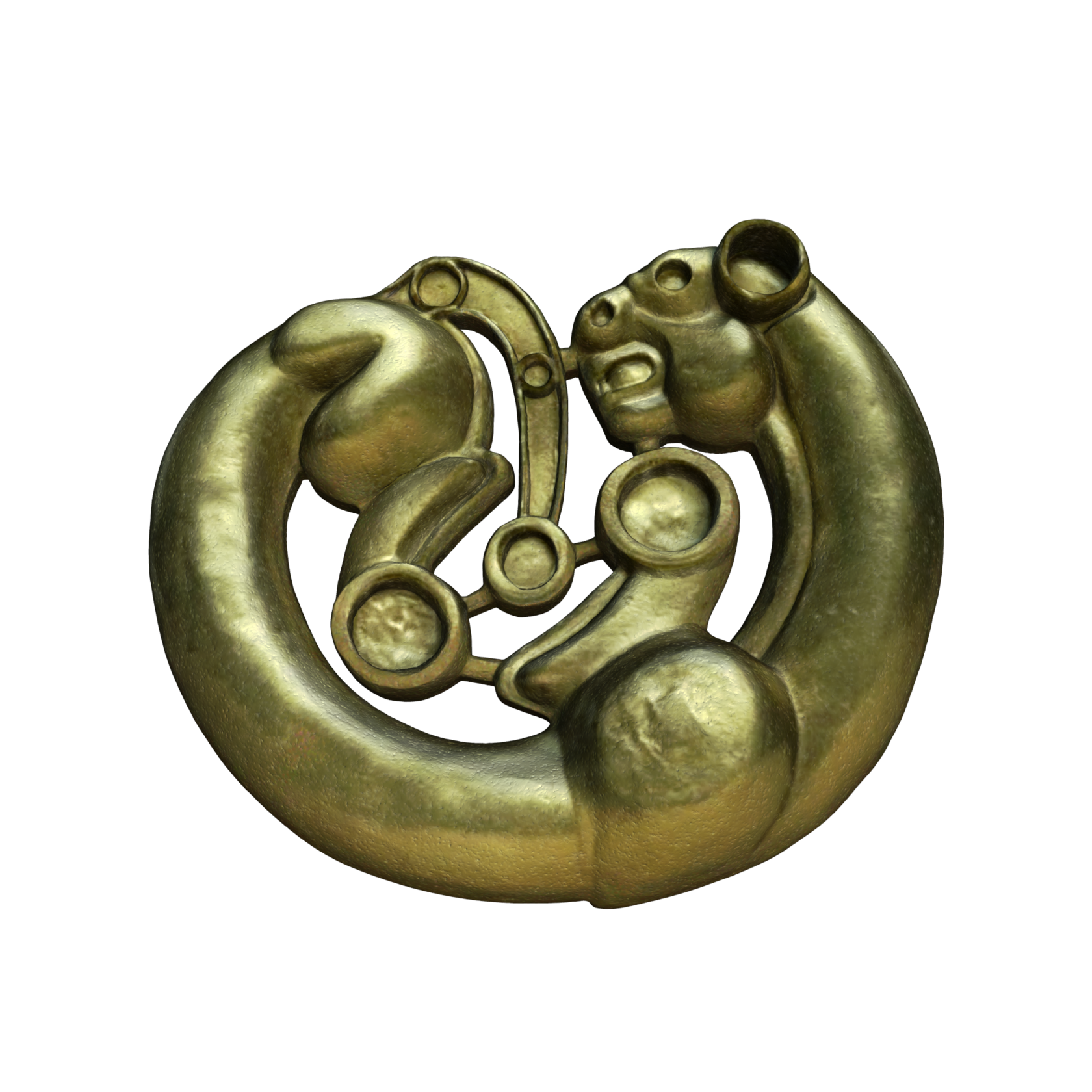Бляха в виде свернувшейся пантеры. VII — VI вв. до нашей эры. Сибирская коллекция Петра I. (Юг Западной Сибири, между течениями рек Иртыша и Оби (Россия)).