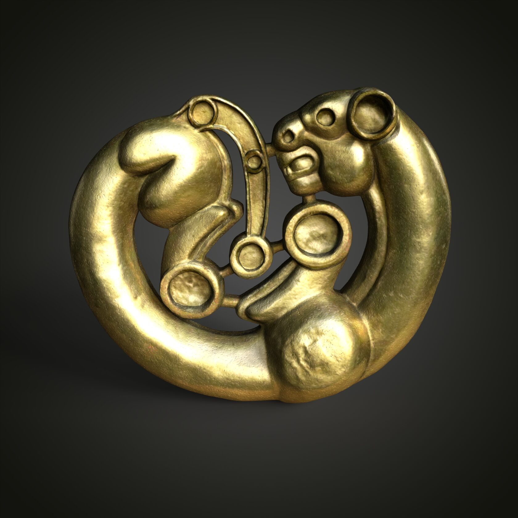 Одной из ранних вещей коллекции — бляха в виде свернувшейся пантеры, датированная VII- VI вв. до нашей эры. Украшения свидетельствовали о родовой принадлежности. В бляхе заложена идея вечного движения мироздания, переданная через фигуру свернувшейся золотой пантеры.