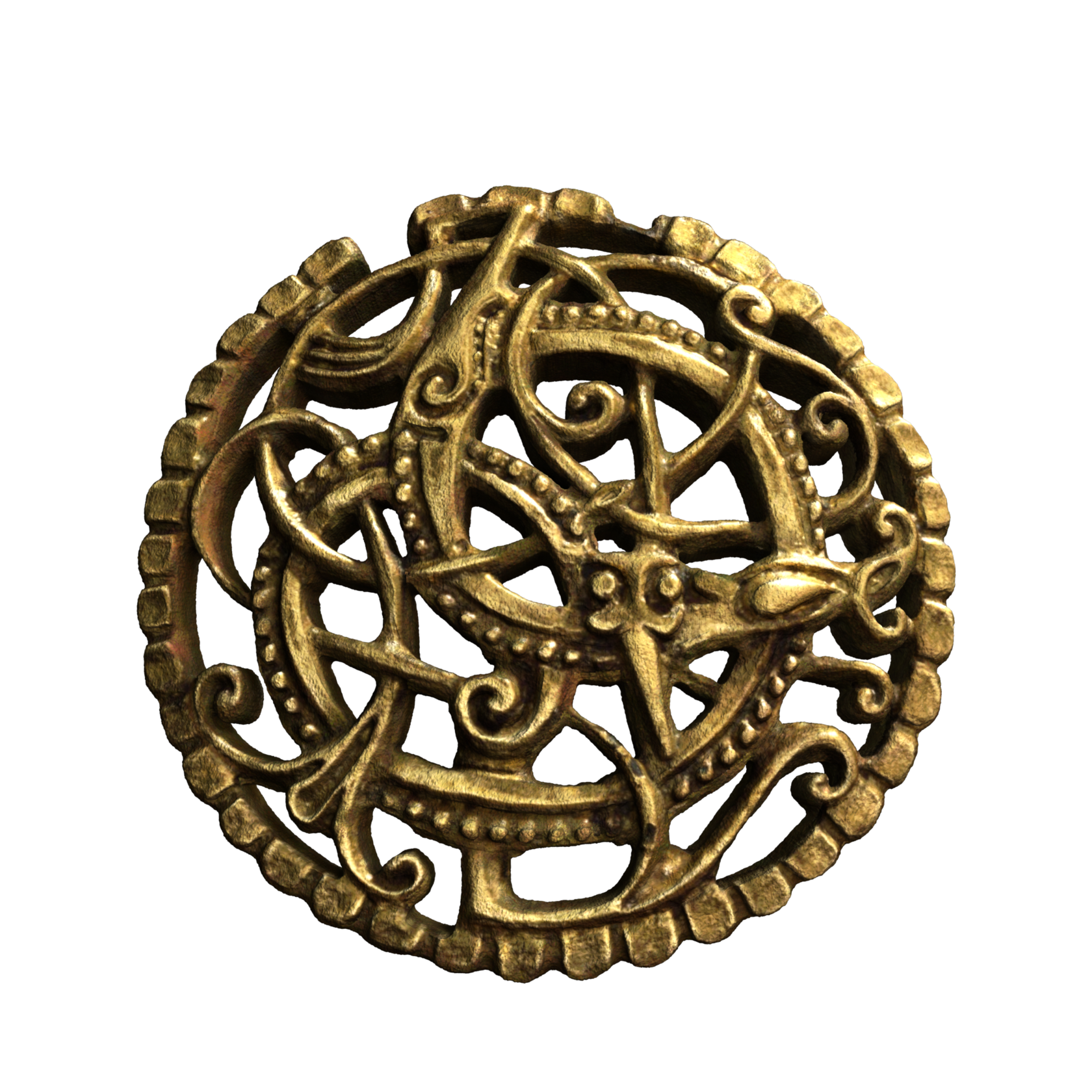 Брошь Питни из позолоченного медного сплава в стиле Урнес. XI век. (Найден на церковном кладбище в Питни, Сомерсет. Британский музей. Великобритания).